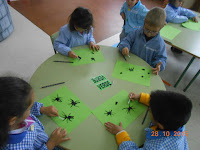 Déunos uns bastoncillos, e con eles tivemos que construir arañas arrastrando a témpera.