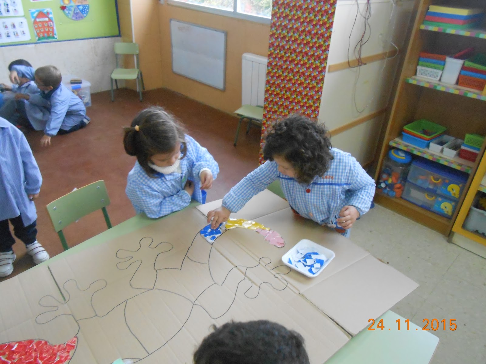 | Unha vez rasgados todos comezamos a pegalos |