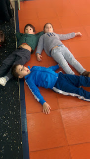 Na aula de psicomotricidade xogaron a facer as figuras dos cadros cos seus corpos